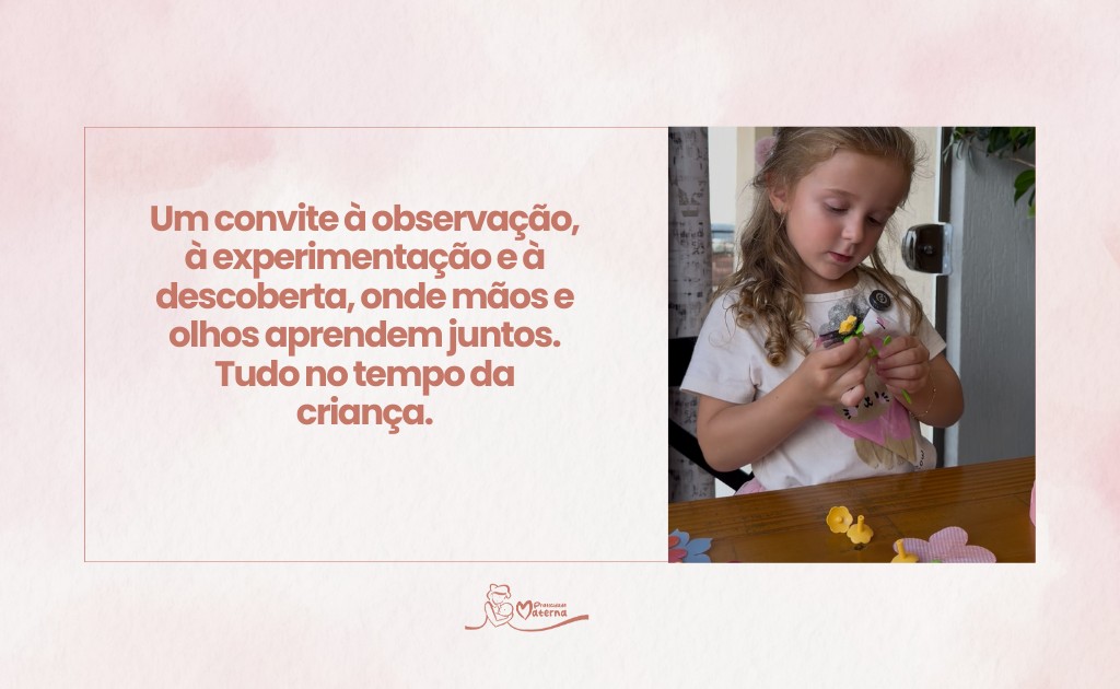 Isso faz com que a criança entenda, na prática, que ela é parte do processo. Não existe uma flor “certa”. Existe a flor que ela criou naquele momento.