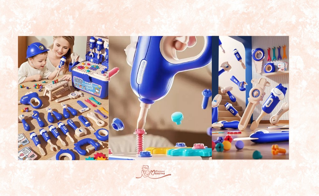 Brincar com ferramentas permite que a criança monte, desmonte e experimente de verdade, promovendo o raciocínio lógico e o pensamento crítico. Esse tipo de atividade ensina, de forma prática, conceitos simples de causa e efeito, além de incentivar a resolução de pequenos desafios — como descobrir qual peça usar primeiro ou como encaixar melhor as partes. A criança aprende fazendo, testando e ajustando, no seu próprio ritmo.