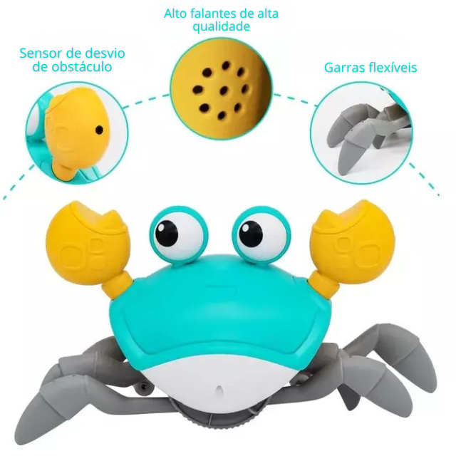 O Caranguejinho Fugitivo é um brinquedo eletrônico interativo que estimula o engatinhar, o riso e a curiosidade das crianças.