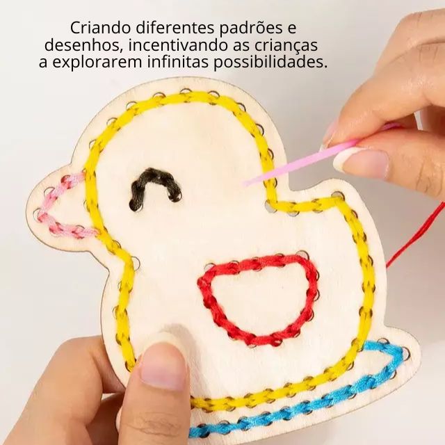 ✅ Brinquedo Montessori Educativo – Inclui modelos de madeira para costura, cores vibrantes de fios e agulhas plásticas, proporcionando exploração prática e experiência criativa.