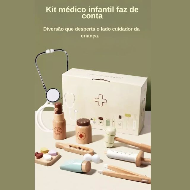 A Mini Doutora Kids é o kit perfeito para despertar a imaginação, estimular a criatividade e ensinar brincando! Feito em madeira de alta qualidade e pensado especialmente para crianças de 3 a 6 anos, este conjunto encantador permite que os pequenos explorem o universo da medicina de forma segura, educativa e superdivertida.