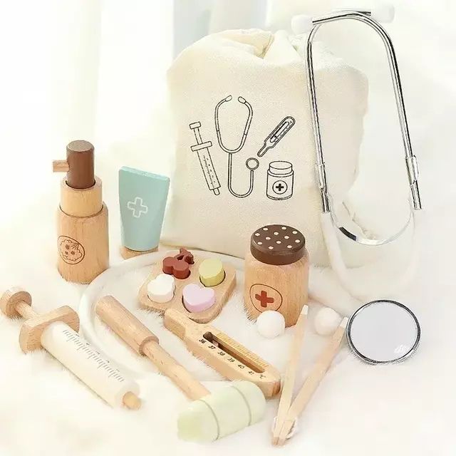 Itens educativos de médico e enfermeira (conjunto completo em madeira)