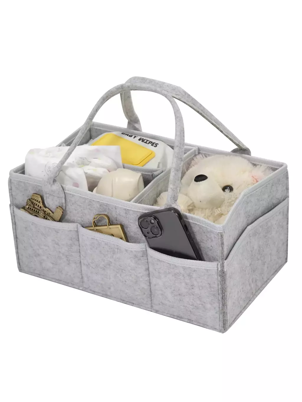 Chega de bolsas bagunçadas ou itens perdidos no fundo do carrinho! Este organizador possui compartimentos estratégicos que acomodam fraldas, lenços umedecidos, mamadeiras, brinquedos, celular, chaves e tudo mais que você precisar. Mantém cada item no seu lugar!