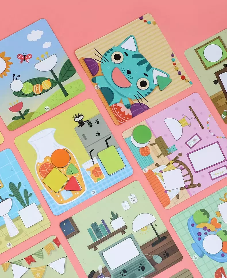 Com formas geométricas coloridas, a criança desenvolve habilidades cognitivas, motoras e visuais enquanto monta diferentes figuras. -