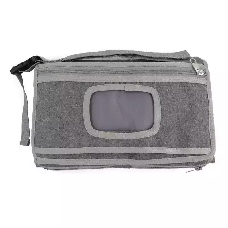 Bolso inteligente para lenços, com acesso rápido tanto com o trocador aberto quanto fechado. -