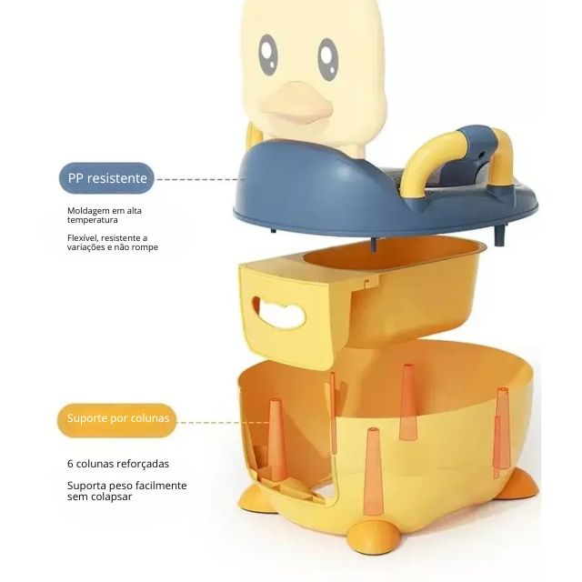 O design em formato de patinho transforma o troninho num “amiguinho” do dia a dia.