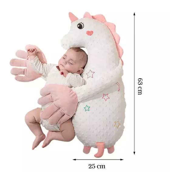 Travesseiro + calmante – Pode ser usado deitado ou abraçado, ideal para acalmar após mamadas ou antes da soneca.