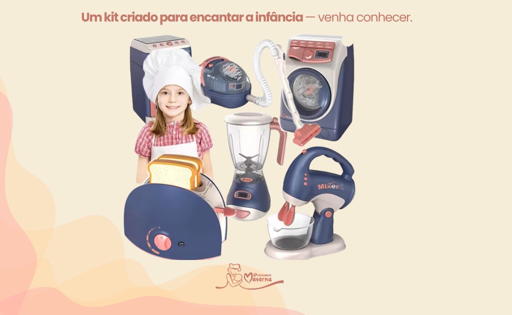 👉 Se você procura um brinquedo que acolhe, ensina e diverte de verdade, o Kit Eletrodomésticos Infantil pode ser um lindo aliado na rotina da sua família.